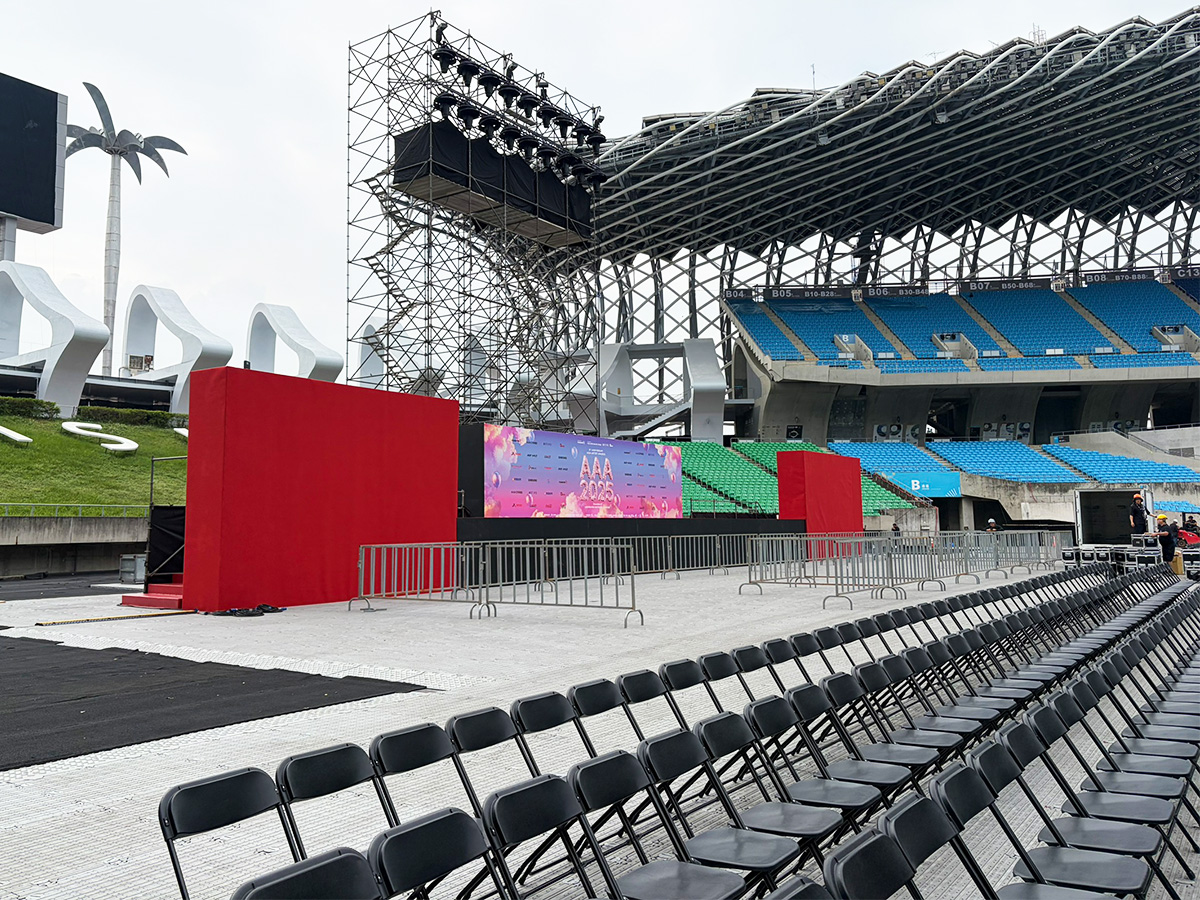 進場與執行期間,依主辦單位需求即時調整設備供應,並靈活整合巨蛋四區既有物品進行調派,充分展現團隊在大型活動硬體工程上的高度執行效率、資源整合能力與臨場應變彈性。