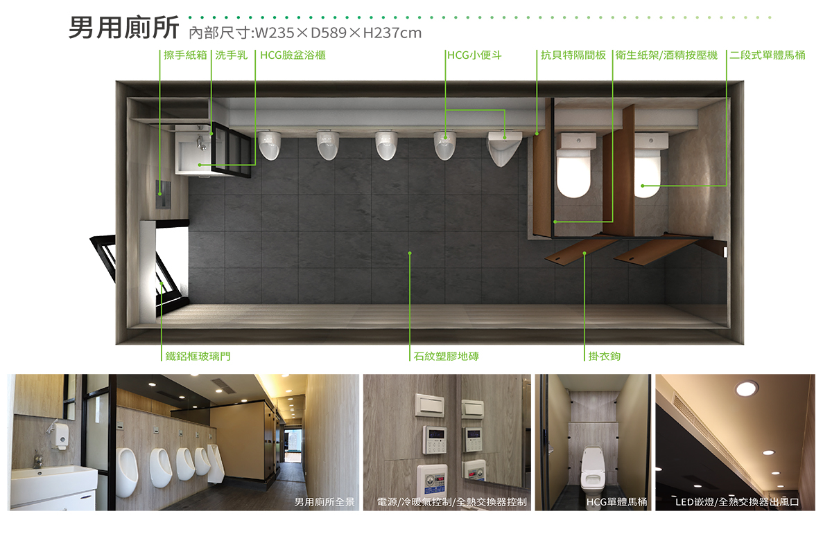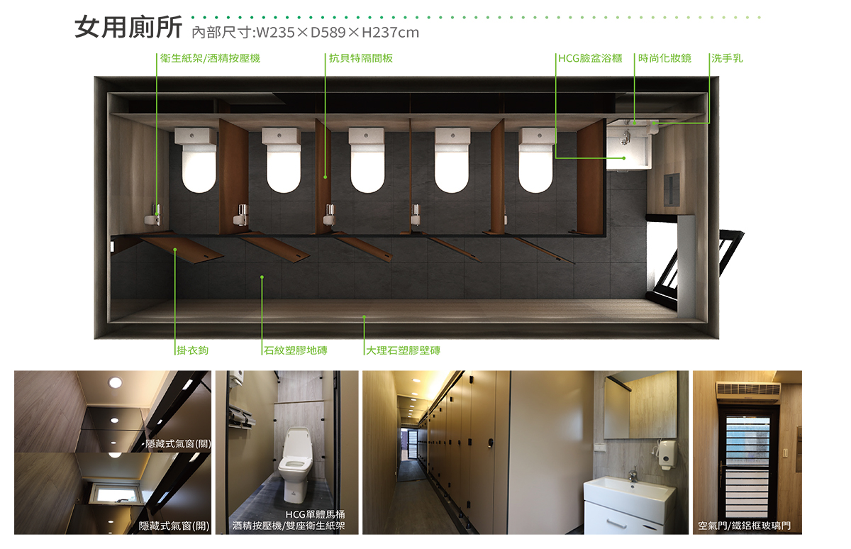| 單座重量 | 男廁約4.8公噸 女廁約4.93公噸 |