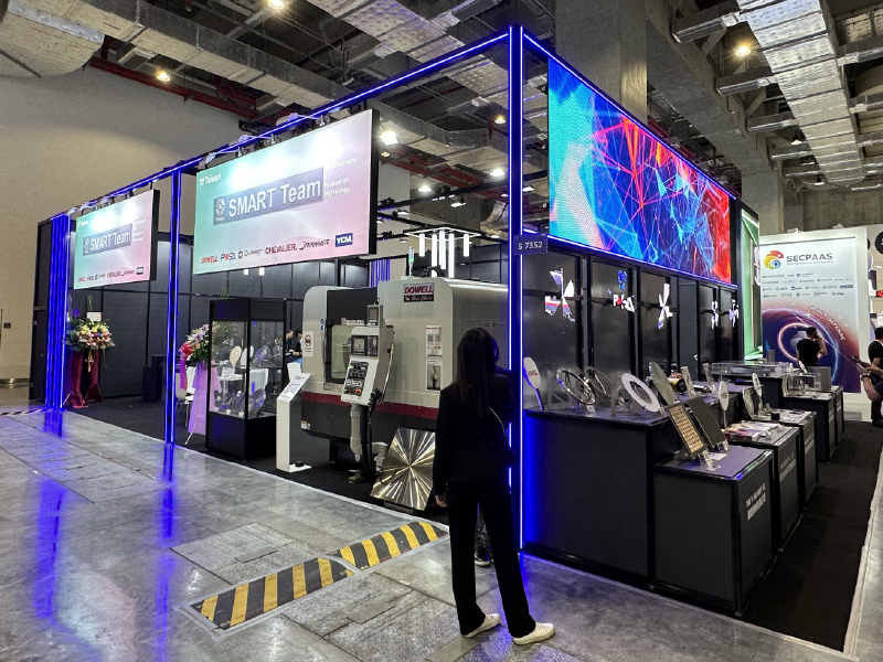 作為展覽攤位主要結構,整合牆面、入口與標示,提升空間完整性與品牌視覺一致性。 -